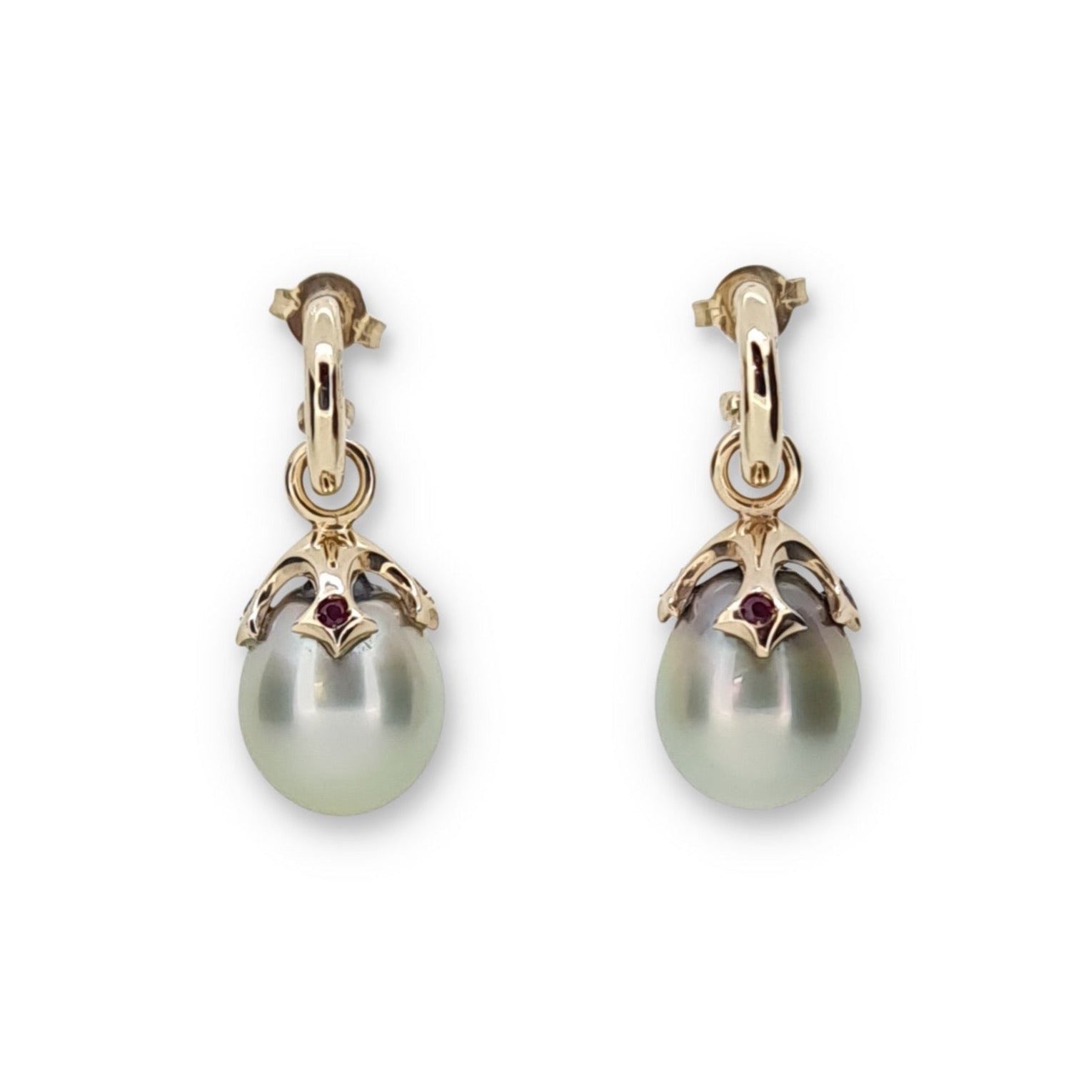 Majesty Pearl Drops with Tahitian Pearls and Rubies in 9ct Gold