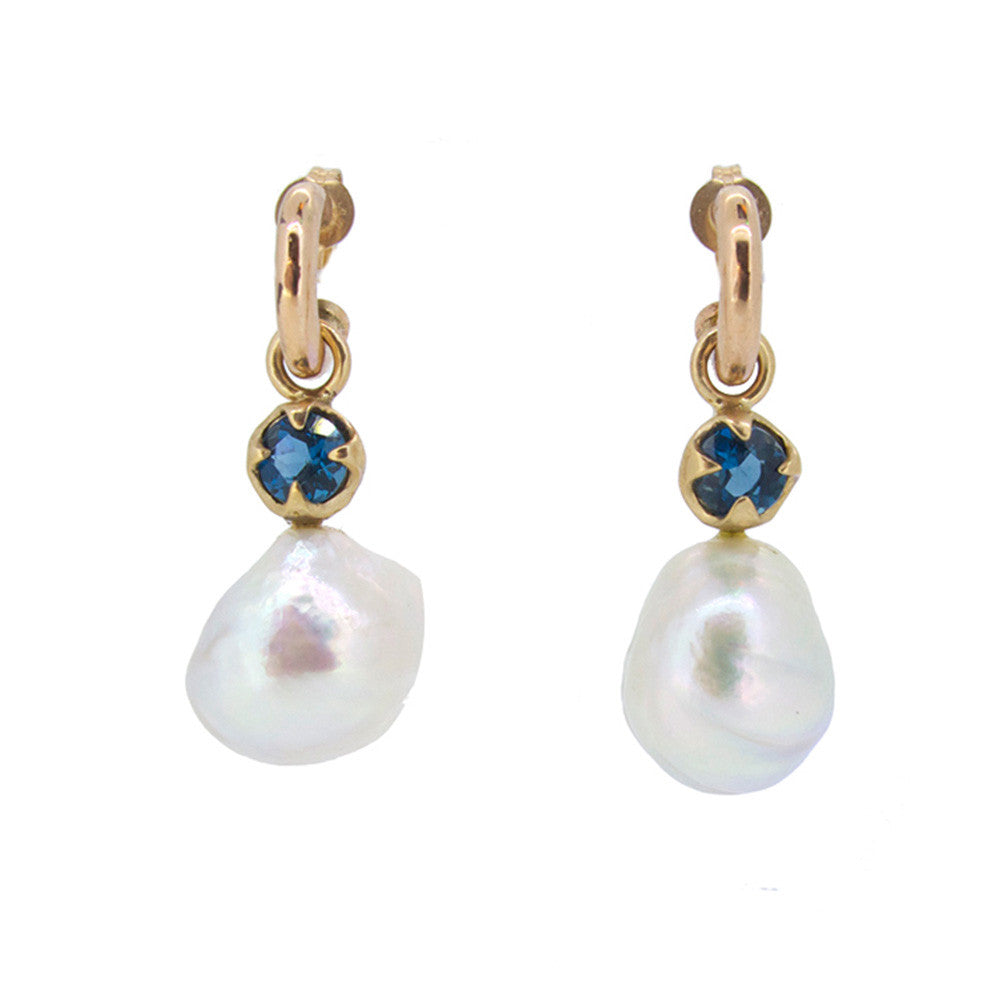 Obelia Earring Drops with London Blue Topaz and Freshwater Keshi Pearls