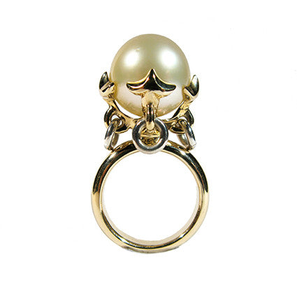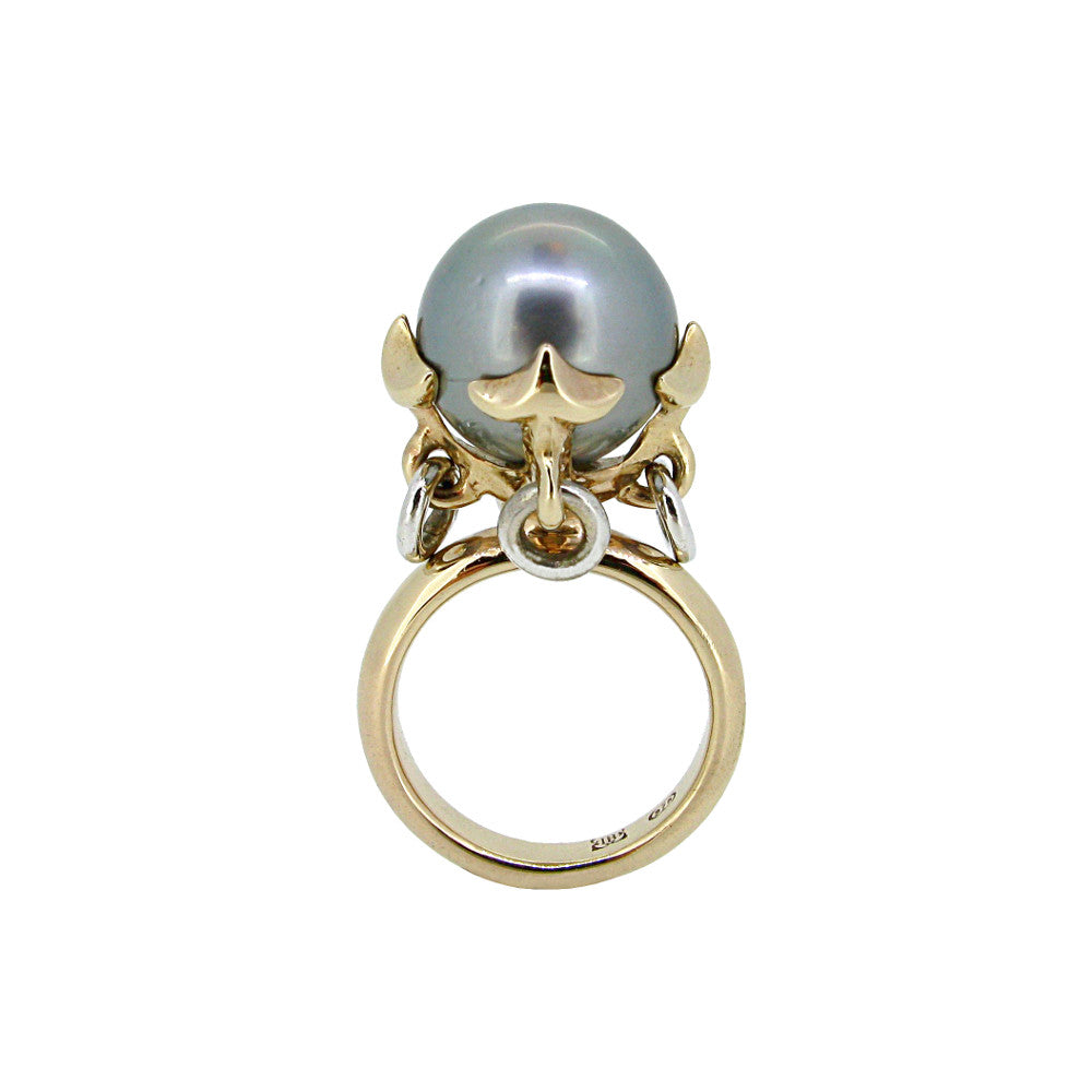 Anchor Ring with Silver Tahitian Pearl in 9ct Ina Gold