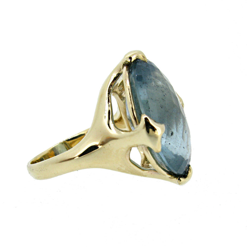 Large Majesty Ring with Chequerboard Aquamarine in 9ct Ina Gold