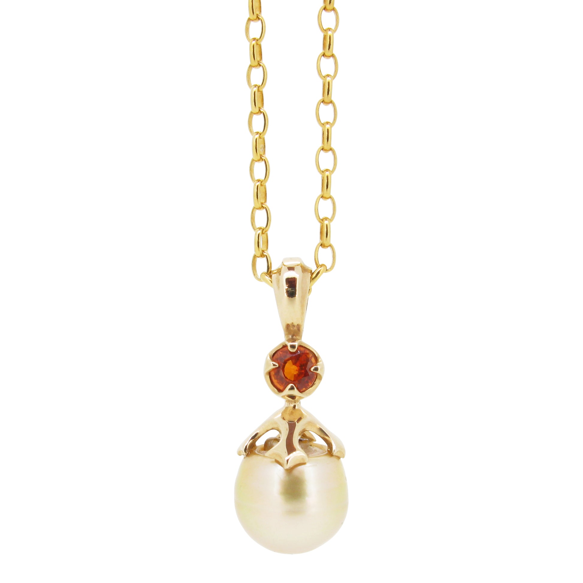 Majesty Obelia Pendant with Gold South Sea Pearl and Orange Sapphire in 9ct Ina Gold