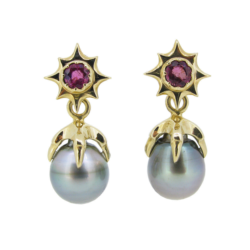 Miranda Talon Earring Pair with Pink Tourmaline and Tahitian Pearl in 9ct Gold
