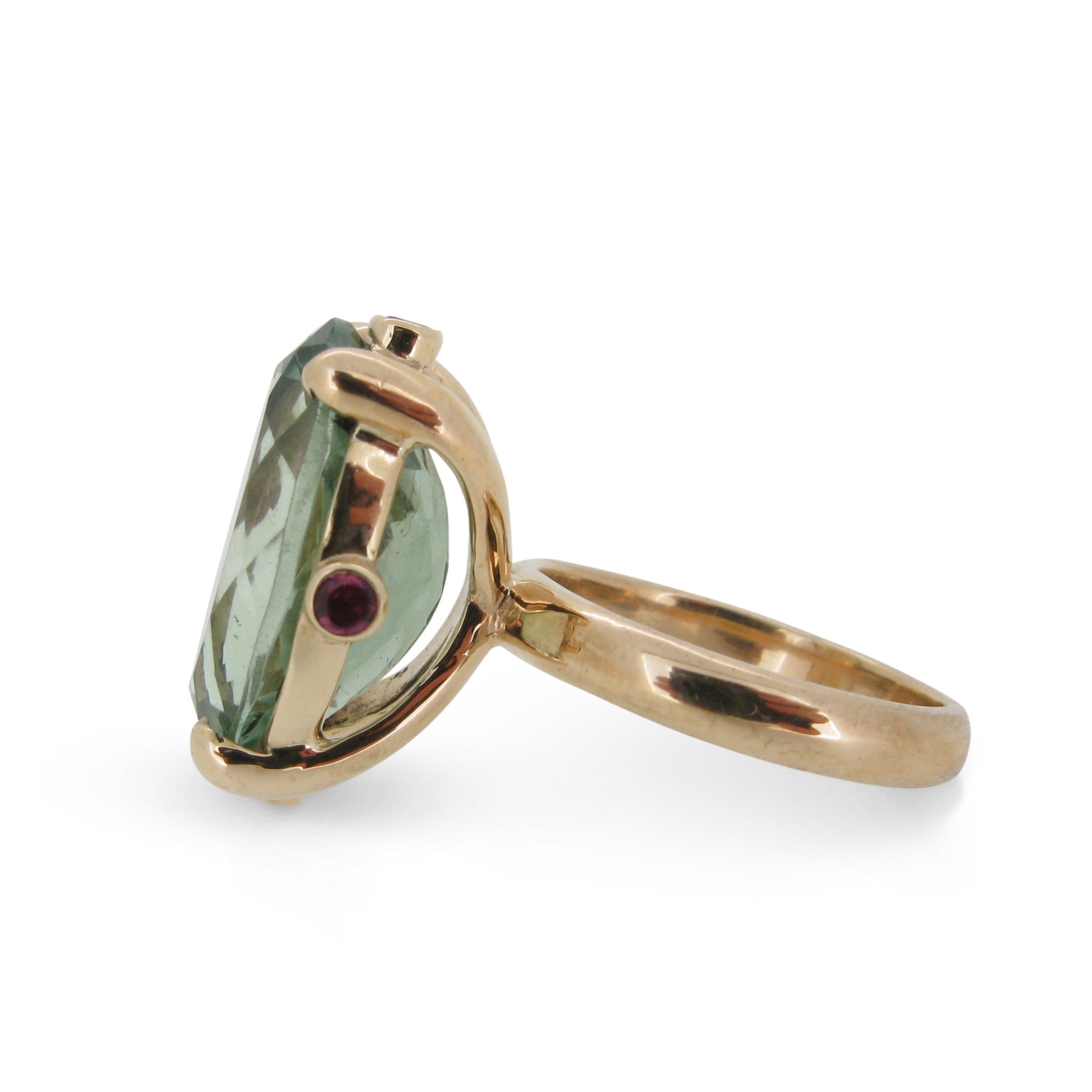 The Rock Ring with Green Amethyst and Pink Tourmalines in 9ct Ina Gold